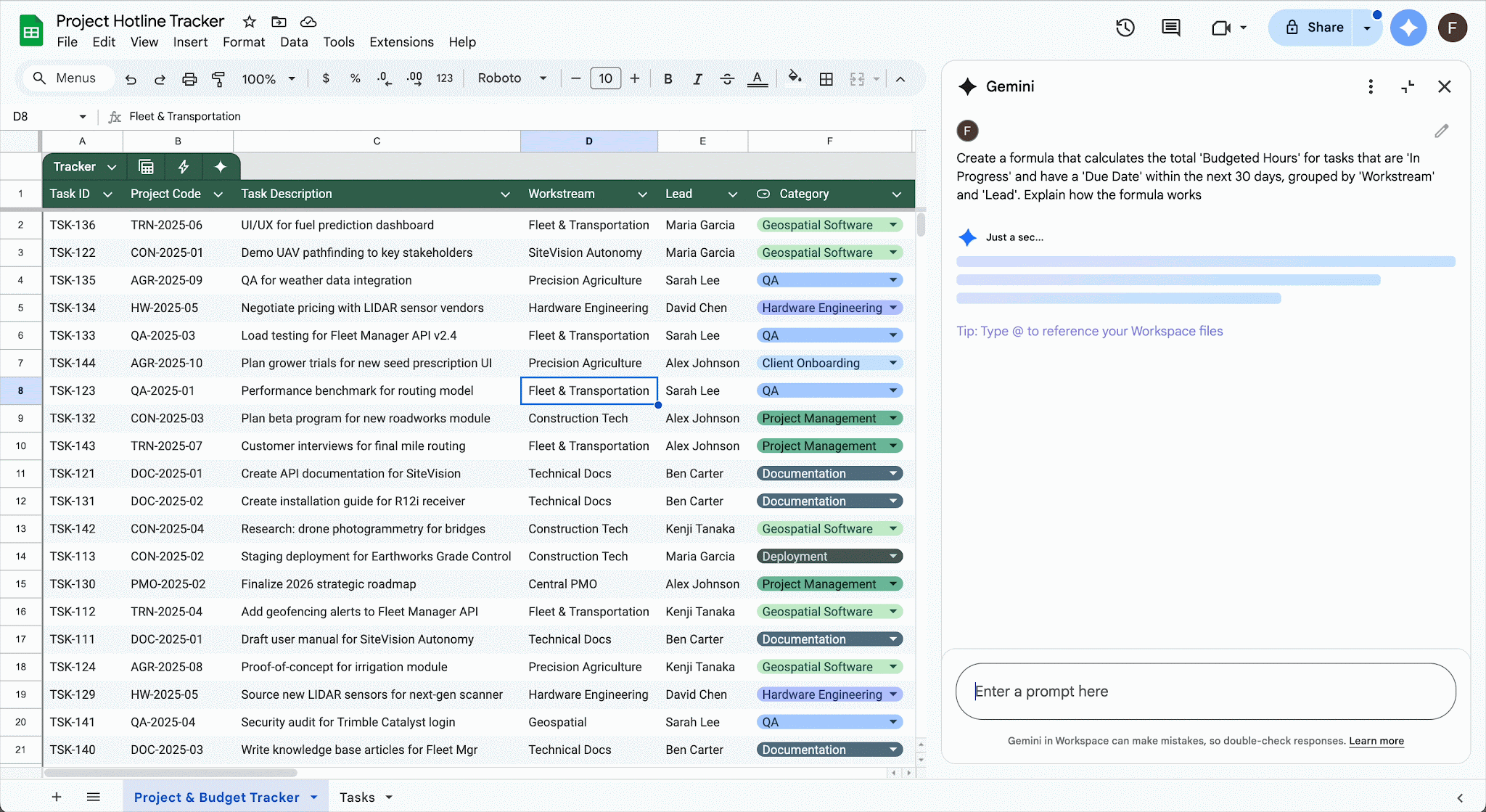 این دستیار هوش مصنوعی به صورت خودکار فرمولهای معیوب را تشخیص داده و آنها را اصلاح میکند. حالا به جای کپی کردن کدهای خطا در نوار جستجو یا گشتن در تاپیکهای مختلف آنلاین، میتوانید از جمینی بخواهید تا مشکل را شناسایی کرده و راه حل ارائه کند. به عنوان مثال، اگر میخواهید تعداد افرادی که RSVP کردهاند را محاسبه کنید و فرمول شما به مشکل برمیخورد، جمینی میتواند توضیح دهد که آیا ستونی که به آن اشاره کردهاید به درستی فرمت شده است یا خیر.